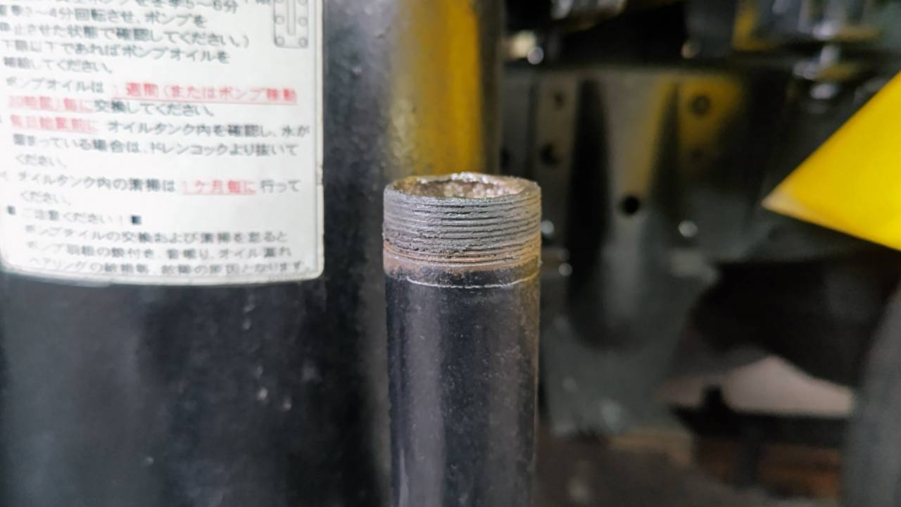 大和郡山市での車の修理は【マスダモータース】で 2023/07/01 イスズ エルフ NKR85AN PTOタンク取替 今回はイスズ エルフの修理です。 月に2回バキューム・カーのPTOオイルの交換作業をしているのですが、一台問題が発生しているものがありました。 とりあえず駄目になるまで様子見でいたのですが・・・ 遂にもうこれ以上は無理というところまできてしまいました。 それは・・・ このPTOのオイル・タンクの入れ口のねじ山です。 摩耗してきて蓋が締められなくなってきたんです。 摩耗なんで交換しかありません。 タンクを発注して交換します。 タンク交換と同時に繋がっているホースも交換します。 タンクには空いている窓が幾つかあり、栓を付け替えておきます。 作業性は悪くないんですが、重いので取り付けの位置合わせが一人では面倒でしたねw こういう架装のパーツは直接メーカーから取り寄せるのが一番早いですね。