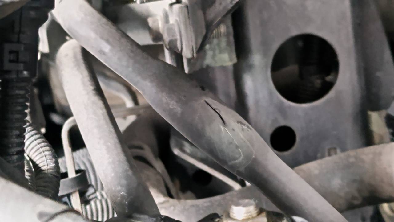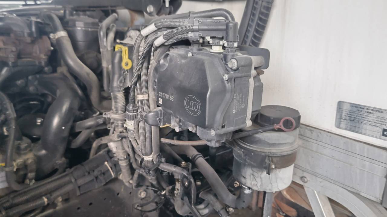大和郡山市での車の修理は【マスダモータース】で 2023/10/25 日産ディーゼル コンドル MK38C オーバー・ヒート修理 今回は日産ディーゼル コンドルの修理です。 お客様から「走っていたら水温ゲージが上がってきた」との事。 早速確認にいきます。 下回りが水漏れの跡でびちゃびちゃです・・・。 ねんの為に水を持ってきていたので補充して、気を付けながら引き取ります。 工場で確認しますが・・・ 駄々洩れなんで直ぐに漏れている箇所がわかりました。 写真の場所に尿素のポンプが来ているんですが・・・ そこに繋がるホースがこんな裂け方をしていました・・・。 ホースが固くなったりしてないんですがね・・・。 ポンプに刺さるホースを二本とも交換しましたが・・・ 裂けるだけでなく膨らんでもいました・・・。 昔、似たようなホースを見たなあ~と記憶をたどると・・・ あ~昔のミニのホースがこんな感じの状態になってたなあ~ おまけに新品でとったホースも針孔みたいなのが開いていてピューって漏れたなあ~って。 ホースを見ると・・・ 国産のホースではありませんでした。 エンジンもGH5でボルボのエンジンでしたし、仕方ないんかなあ~と納得してしまいましたw 交換後に入念に漏れの点検とオーバー・ヒートの確認をしましたが、問題なかったので作業は終了です。