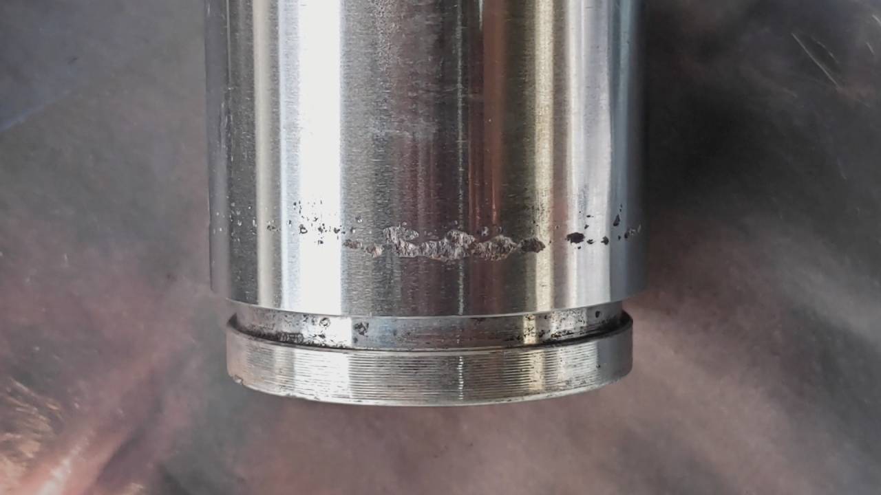 大和郡山市での安心車検は【マスダモータース】に 2023/11/04 ふそう キャンター FE52EB 車検 今回はふそう キャンターの車検です。 このサイズのキャンターにしては走行距離もいっており、前回の点検でも足回りの修理があった車です。 さて、何があるやら? 早速リフト・アップして分解、点検していきます。 リヤのブレーキは問題なかったので清掃、グリス・アップしますが・・・ ブレーキ・ホースは亀裂が確認できたので交換です。 フロントのブレーキはオーバー・ホールです。 パッドも交換、ローターも交換です。 ハブ・ベアリングも焼けが確認できたので交換です。 フロントのブレーキのオーバー・ホール中にピストンにかなり深い虫食いが確認できました。 これも交換です。 リヤと同じ状態だったフロントのブレーキ・ホースも交換し、フルード交換します。 ベルトも状態が悪いので交換します。 後は水やエンジン・オイル、ワイパー・ゴムを交換したら計測、陸事で書類を貰って終了です。