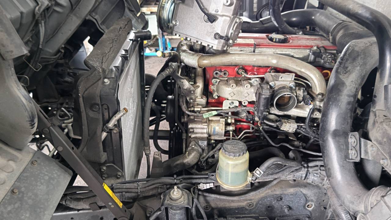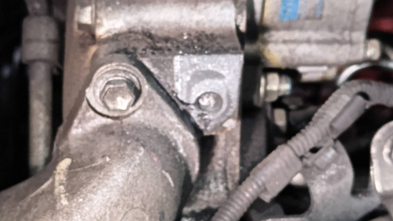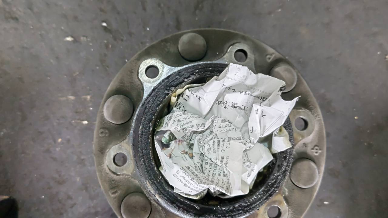 大和郡山市での車の修理は【マスダモータース】で 2023/12/18 日野 デュトロ XZU414 音鳴り修理 ようやっと・・・ 仕事も落ち着いたので、ブログを再開していこうかなと思います。 今回は日野 デュトロの修理です。 3か月点検で預かったのですが・・・ エンジンから妙な音が聞こえます。 バチバチ、バタバタと・・・ 工場で点検していくと・・・ ラジエター・ファンが当たっていました。 羽の先が当たるようですが、一体何に? ウォーター・ポンプに問題はないし・・・ で、見ていくと・・・ 冷蔵冷凍車用のコンプレッサの付近と当たっています。 ん??? なんかコンプレッサ、ガタついてない? 分解していくと・・・ コンプレッサ・ステーのボルトが折れていました・・・。 その影響で・・・ 他のボルトも緩んで、抜けているものもありました・・・。 修理は出来そうなので部品を段取りして作業していきます。 折れたボルトを抜いて、ねじ山を修正することで再度組付ける事ができました。 同時に3か月点検もしてましたが・・・ なんかローターの一部に油汚れが・・・ ココに油汚れが付くって何? 考えていくと・・・ ハブ・シールのインナーから出てきたグリスが走った後の高温のローターに落ちて溶けたようでした。 こちらも修理して作業は終了です。