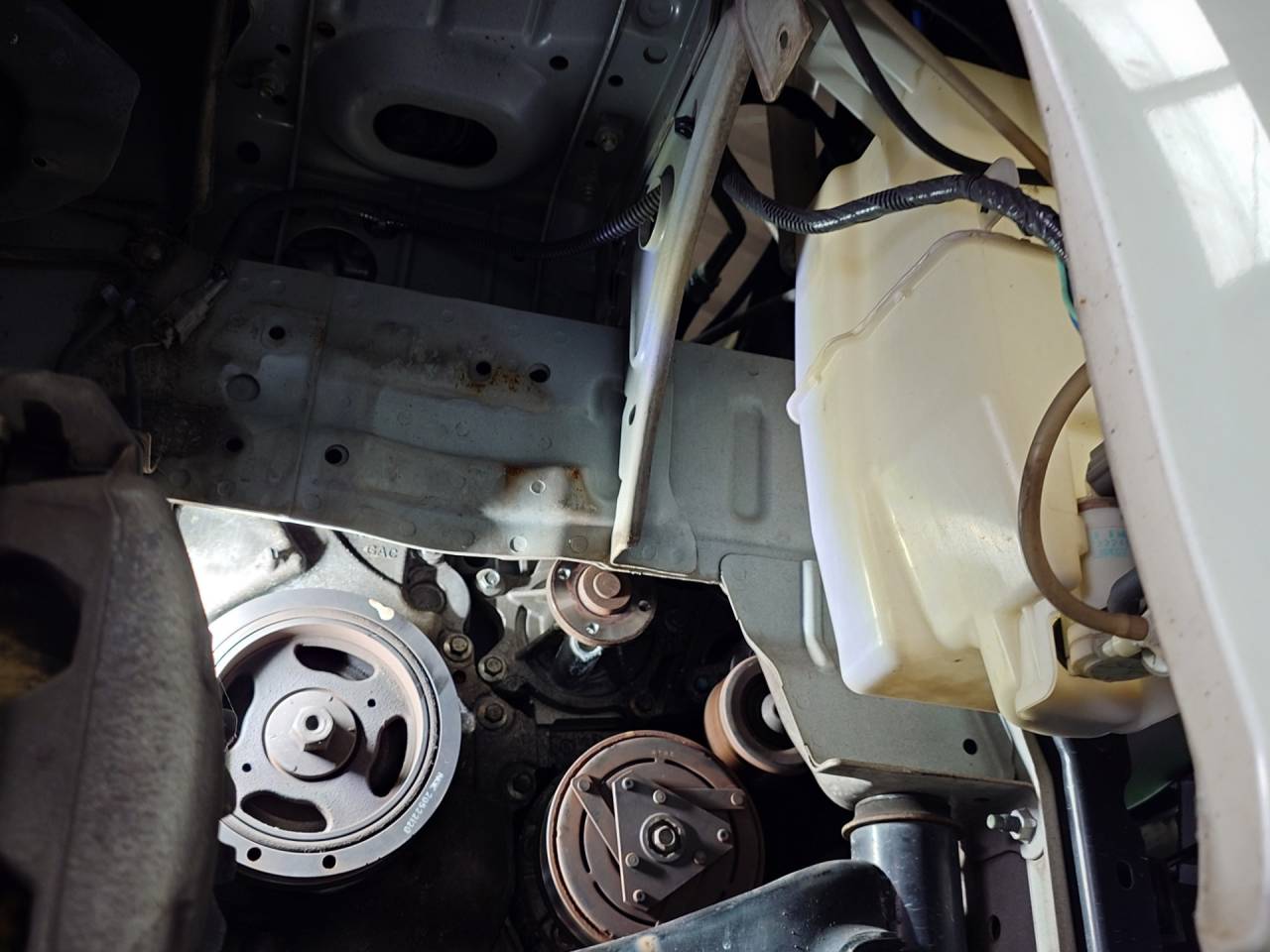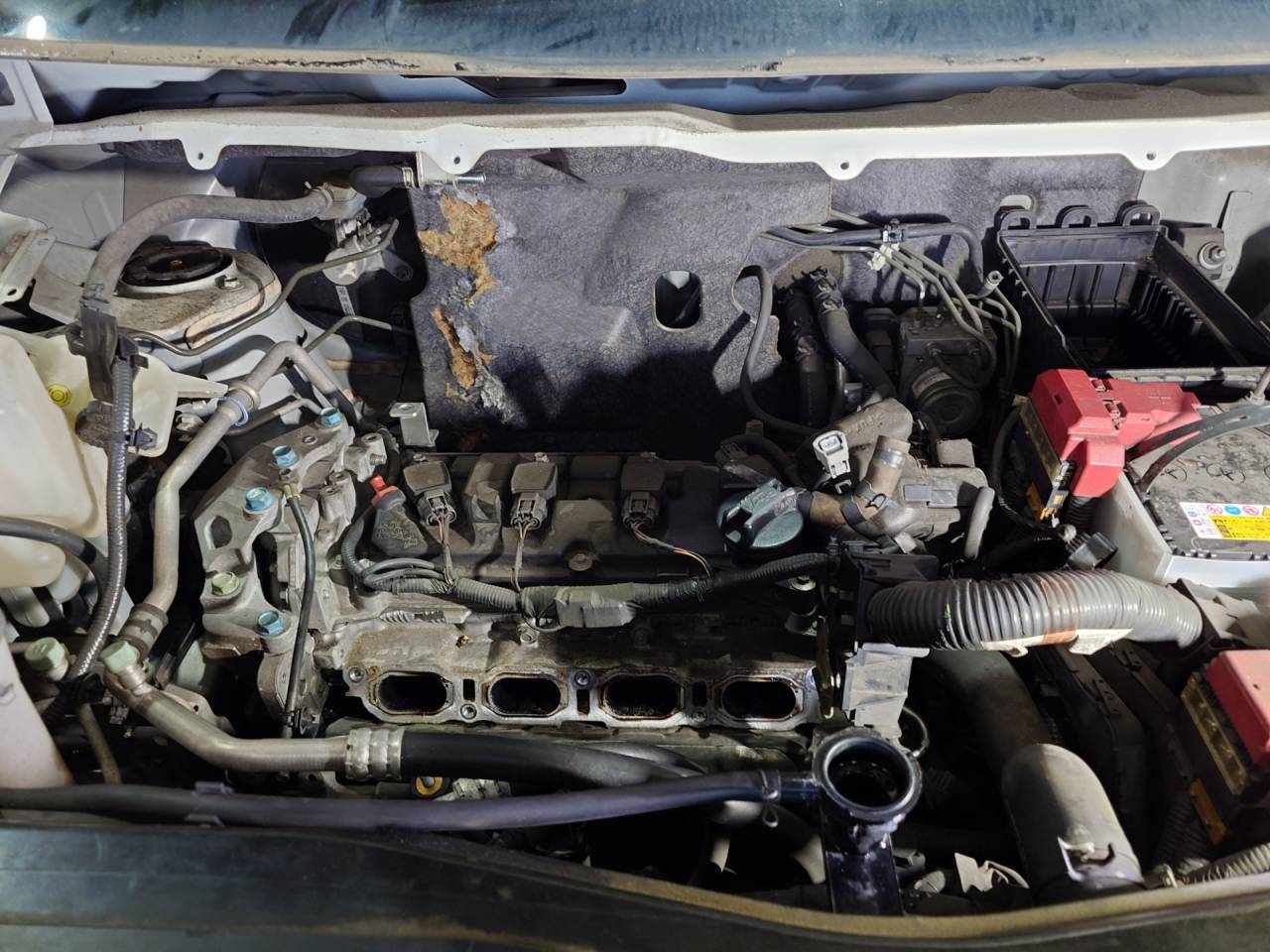 大和郡山市での安心車検は【マスダモータース】に 2024/01/13 日産 セレナ HFC26 車検 今回は日産 セレナの車検です。 趣味のお友達の車で走行距離も10万オーバーってことで何があるやら? 早速リフト・アップして分解、点検していきます。 前回の車検整備のお陰もあって作業数は少ないですが・・・ その分やることが・・・ 距離からプラグを交換しますがパッと見コイルも見えないなぁ~ なんせインテーク・マニホールドの下にあるからね。 そうすると・・・ インテーク・マニホールドを外さないといけません。 交換する隙間位作っておいて欲しかったですねぇ~。 ウォーター・ポンプからの水漏れも確認できました。 こちらも交換しておきます。 ATFも交換しておきます。 エンジン・オイルばかり交換の話を聞かされますが、自動車に使われているオイル類は必ず劣化します。 各オイルも定期的な交換がいい状態を保つ一つです。 エアコン・フィルターも交換しますが、日産はねぇ・・・ 後はエンジン・オイルやワイパー・ゴム、スマート・キーの電池を交換して計測、陸事で書類を貰って終了です。