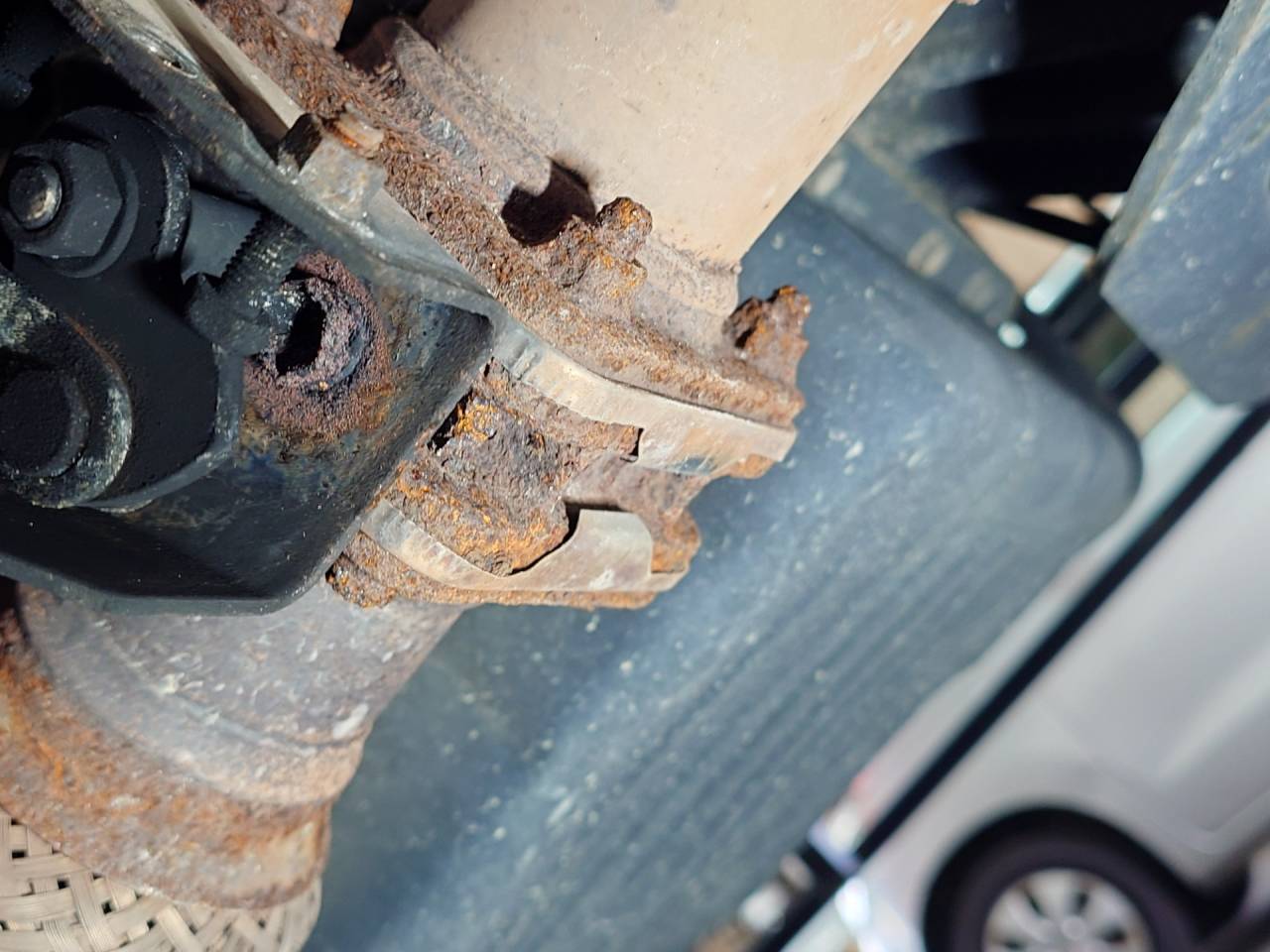 大和郡山市での車の修理は【マスダモータース】で 2024/01/31 今回は日野 デュトロの修理です。 お客様から「DPFを焼いても直ぐにランプが点灯する」との事。 早速引き取って確認します。 作動はちゃんとしていますが、エンジンからの排気温度が上がらない。 これは・・・ 診断機から作動テストをしていくと・・・ 排気のバタフライが途中までしか作動していませんでした。 しっかり弁が閉まらないので温度が上がらなかったんですね。 部品を段取りして分解していきますが・・・ ボルトがえらいことになってる・・・ こうなると時間がかかります。 ミッションと近いためにガスで炙れないので、コイル式の奴で温めて外します。 なんとか外すことができました。 排気部分の錆びは酷い場合が多いですね・・・。 相手側のねじ山は荒れてはいましたが、修正で問題ありませんでした。 バタフライを交換して再度DPFの強制燃焼を行います。 今度はしっかりと焼くことができました。 差圧も問題ありませんので、ここの修理は終了です。 後一つ、エアコンの吹き出し口の切り替えがおかしいので確認します。 ユニット側の動きに問題がないので、ダイヤル周りを分解していくと・・・ ワイヤが曲がって動きがおかしくなっていました。 交換後はスムーズに切り替えができたので作業は終了です。