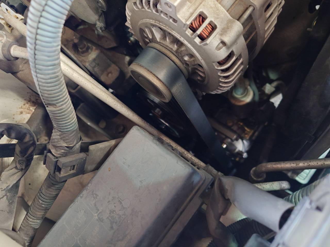 大和郡山市での安心車検は【マスダモータース】に 2024/02/17 日産 リバティ RM12 車検 今回は日産 リバティの車検です。 この車もずっと当社で管理させてもらっている車なんで比較的安心です。 ですが、何が起きているかわからないので慎重にいきます。 早速リフト・アップして分解、点検していきます。 ブレーキ周りは問題なかったので清掃、グリス・アップしてフルード交換です。 それなりに古い車なんでプラグは車検毎に交換する古いタイプが使われています。 勿論交換しておきます。 ベルトも交換しますが、点検時に音なりがしていました。 原因は・・・ ベルト・テンショナーからでした。 音鳴りし始めると故障手前なんで交換しておきました。 クーラントも交換します。 新しい車なら真空式のクーラント・チャージャーが使えますが、古いとトラブルの元なんで基本のやり方で行います。 このころの日産車にはヒーターのエア抜きプラグが付いている車が多いです。 キーレスの電池も交換します。 エアコン・フィルターも交換します。 ボルト止めのグローブ・ボックスを外さないといけないのがなんとも・・・ねぇ。 最後に計測、陸事で書類を貰って終了です。