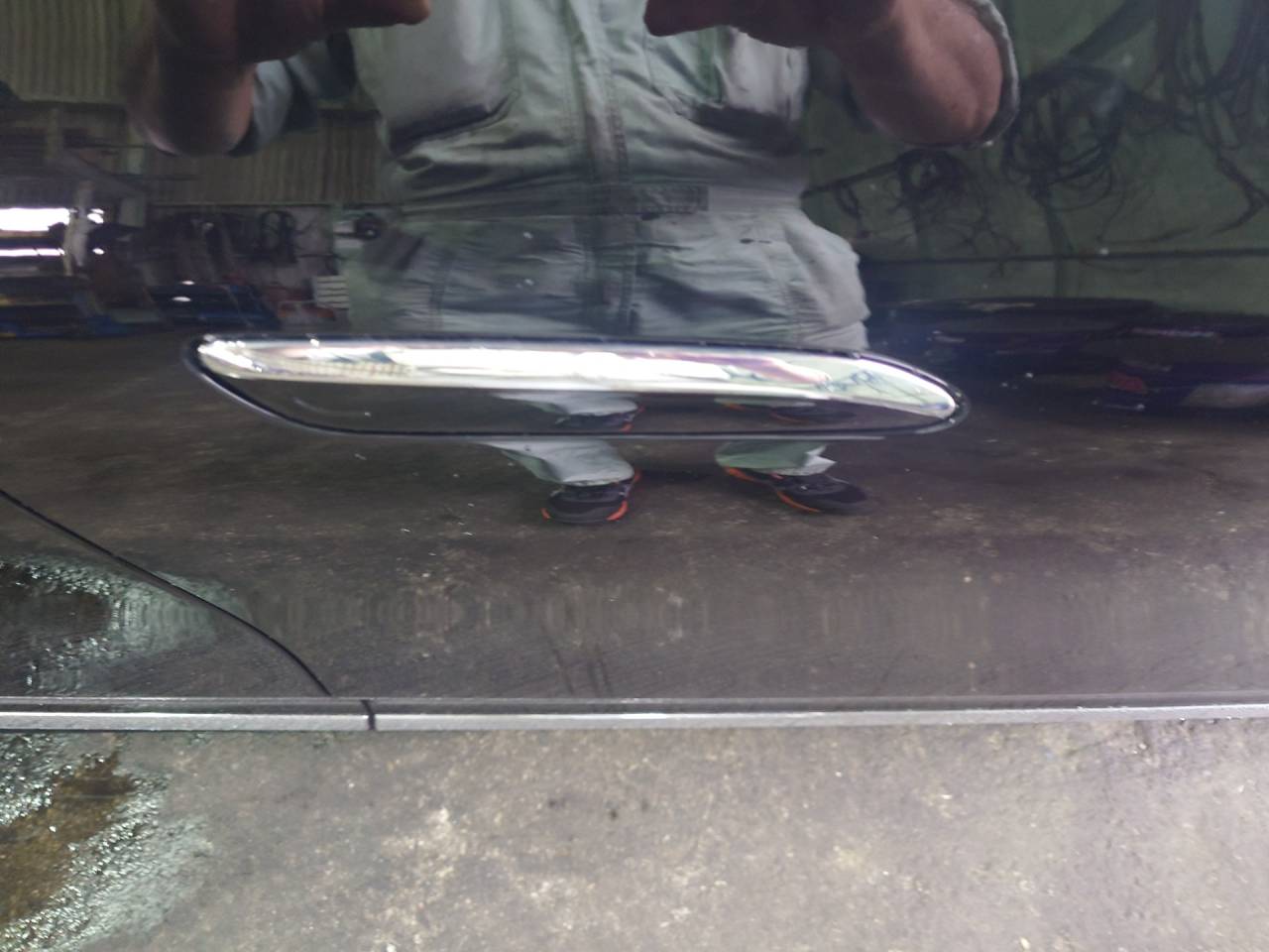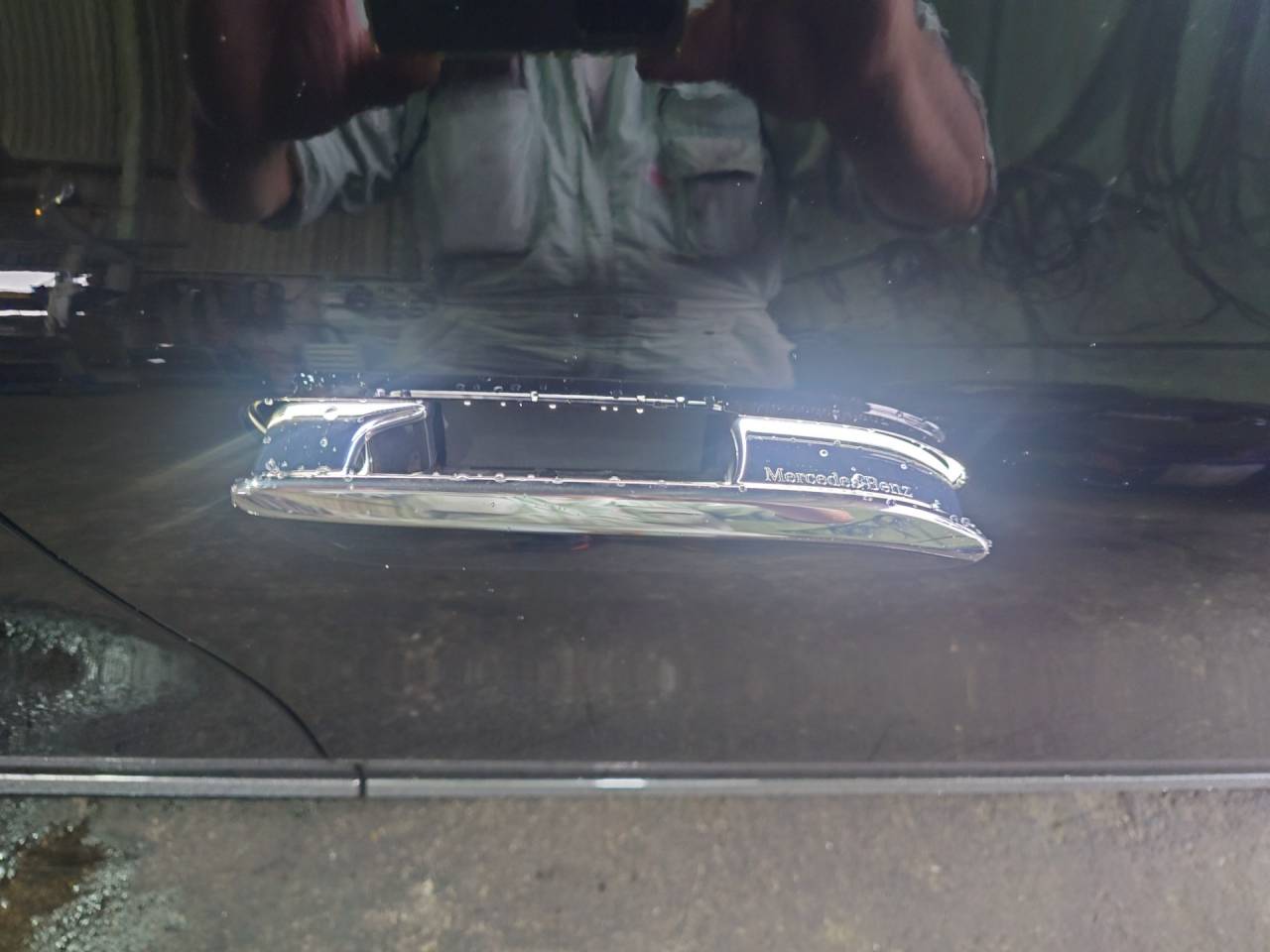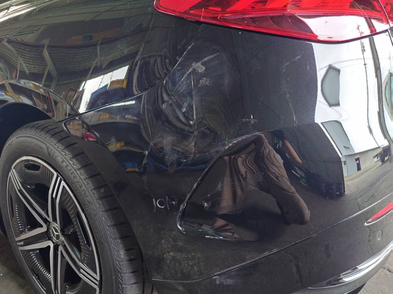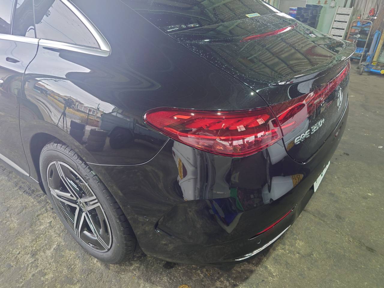 大和郡山市での車の鈑金塗装は【マスダモータース】で 2024/02/24 メルセデスベンツ EQE 鈑金塗装 今回はメルセデスベンツ EQEの鈑金塗装です。 懇意にしてくれている取引先の社長さんから「駐車場で当て逃げされた」との事。 車両保険も入っていられるので保険を使って直します。 頭から止めていたので後側が損傷しています。 バンパーとテール・ランプそしてフェンダーが少し。 ベンツなんでこれでも高額修理になります。 車両保険に入っていると急な出費にならずに済みます。 購入して1週間での事故な上、新しい車なんで部品が直ぐに入らないと悲しくなる状況でしたが綺麗に治ったので喜んでもらえましたw ウチでは珍しい外車なんで色々楽しまさせてもらいましたw とりあえずアウター・ハンドルどうなってるねん?と思ったら・・・ ロック解除したら出てくるのね~ インテリアも未来的。 メーターが液晶なのは最近の国産でも増えてきてますね。 センター・コンソール周りが特に最新って感じw でかいタッチパネル式の液晶モニターが鎮座していて、走っているとナビ画面だけでなく各カメラの映像の出て・・・すげ~w 走りもモーターなだけにアクセルに対するレスポンスがガソリンとは比べ物になりません。 加速がすさまじいw フル・スロットルだと怖くなるくらいにね・・・。 足回りのセッティングも国産セダンよりしっかりしていて運転が楽しいですねw 価格が1200万超えてくるので買いたくても買えませんがね・・・。
