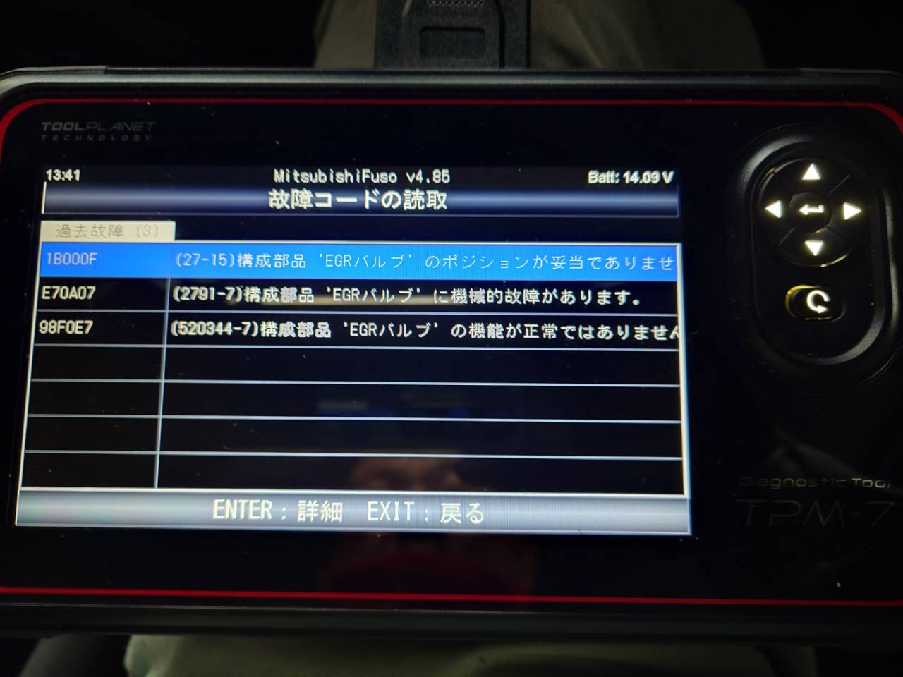 大和郡山市での車の修理は【マスダモータース】で 2024/06/23 ふそう キャンター FEB80 EGR修理 今回はふそう キャンターの修理です。 この車・・・ ついこの前DPFの修理をした車です。 DPFの修理後暫くして「またチェック・ランプがついた」との連絡。 まさか、またDPFのトラブルか? 疑心暗鬼になりながら引き取り、診断機を当ててみます。 すると・・・ 今回入っていたコードはEGRの作動に関するものでした。 前回には入ってなかったコードです。 EGRのトラブルで詰まることもありますが、前回コードが入ってなかったのと排気ガスの状態から修理後タイミング悪く壊れたようです。 早速部品を発注して作業に取り掛かります。 外していくときに思うのです。 このフィアット製4P10・・・ 中途半端に13mmとか15mmとか使われるから作業性の悪いこと。 エンジン自体も耐久性が低く困ったちゃんですw 外したEGR。 煤もひどいです・・・。 クーラーの方も外して清掃しておきました。 トルクスまで使うの・・・ほんとに勘弁です・・・。 新品と付け替えてコードを消します。 暫く走行しましたが問題なかったので納車、前回と同じく暫く走ってもらって問題が発生したら再度連絡を貰う段取りでしたが・・・ 連絡入らなかったので作業は終了です。